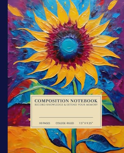 Bold Sunflower Composition Notebook | Energetic College-Ruled Notebook: Expressive Painting of Sunflower on Deep Purple Background | 110 Pages | 7.5" ... | Perfect for School, Work, or Personal Use