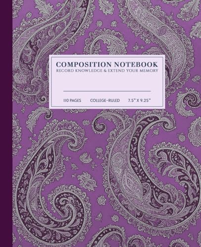 Vintage Paisley Elegance Composition Notebook | Luxurious College-Ruled Notebook: Intricate Silver Design on Deep Purple Background | 110 Pages | 7.5" ... | Perfect for School, Work, or Personal Use