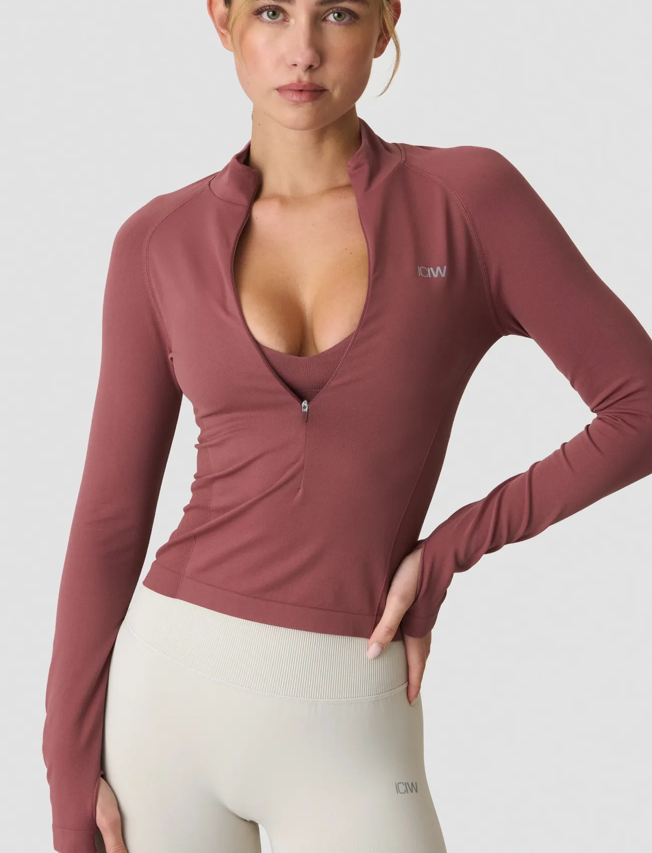 ICANIWILL Define Seamless Invisible 1/2 Zip Ls W - Cream - S