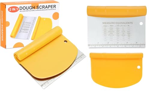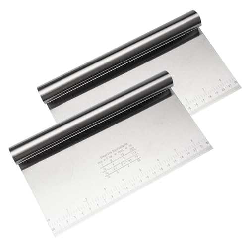 2 stycken stora degskärare i rostfritt stål med mätskala degskrapa degkort degspatel skrapa kök för kakor, kaka, pizza, tårta, dough, bakredskap (22 x 12 cm)