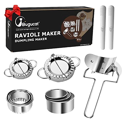 Bugucat Dumpling Maker 11 set, Ravioli form Pierogi Cutter rostfritt stål Degskärare Cake Press mögel, Degpress Bakverksmaskin Pastapress Omslagsdeg Skärare Pajform Bakverk Verktyg Kökstillbehör