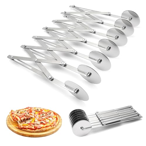 7 hjul pizzaskärare i rostfritt stål, degskärare med 5 hjul, justerbar pizzaskärare, rostfritt stål degskärare hjul degskärare bakverksskärare verktyg för pizza, kakor (7 hjul)