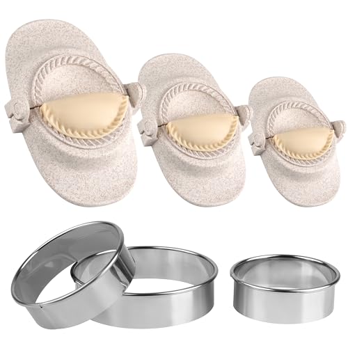 Winter Shore Uppsättning Dumplingforms- & Empanadapress med Rund Degskärare [3 Storlekar] - Livsmedelsklassad Empanadaform för Gyoza, Klimp, Dumpling & Pirog - Liten 7 cm, Medelstor 8 cm, Stor 11 cm
