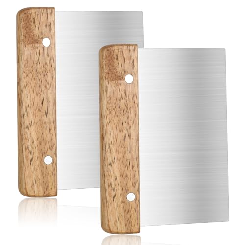 bssmmai 2 stycken degskärare, degspatel, degskrapa med trähandtag, degskrapa rostfritt stål, livsmedelssäker blad av rostfritt stål för att skära deg, pizza, nougat – 15 cm