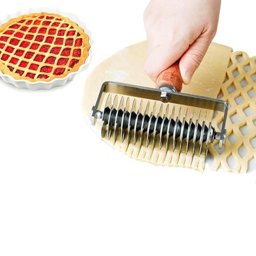 Galler degskärare, gallerrulle deg rostfritt stål, gallerskärare degkavel galler bakning gallerrulle gallerrulle pizza degskoter, galler kavel med trähandtag för att skära deg, pizzaboder