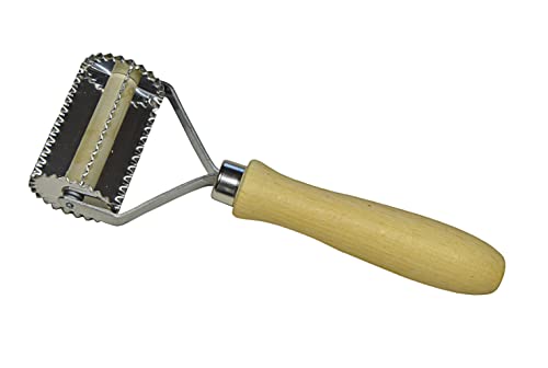 Hjul för färsk bladdeg, 4 justerbara tandblad, diameter 36 mm av rostfritt stål och trähandtag, degskärare. Com [Made in Italy]