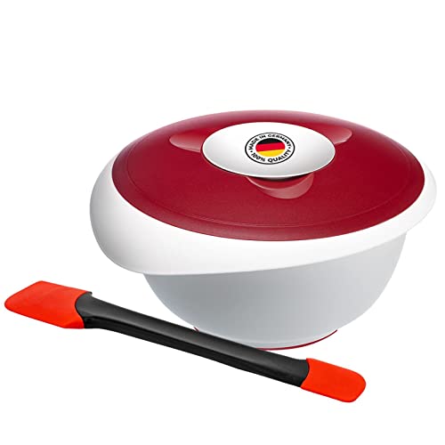 Westmark matlagnings- och bakningsset i 2 delar, Blandningsskål med lock på 3,5 l och degskrapa med avtagbara silikondelar, Plast/silikon, Duo, vit/röd/svart, 315522E6