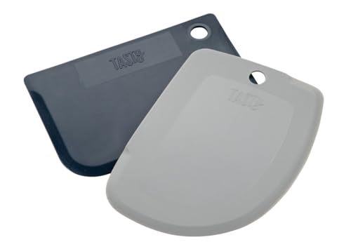 Tasty 2 st. Degkort-set – plast PP-degskrapa i mörkblått och grått – perfekt för skrapning, slät målning och dekorera dina bakverk