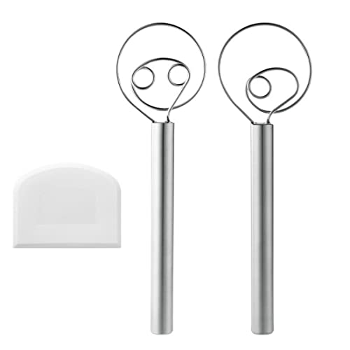 ZMREN Dansk deg visp, 304 rostfritt stål degvisp, 2 stycken bröddeg, visp, holländsk visp, handmixer, för bakkakor, dessert, surdeg, pizza