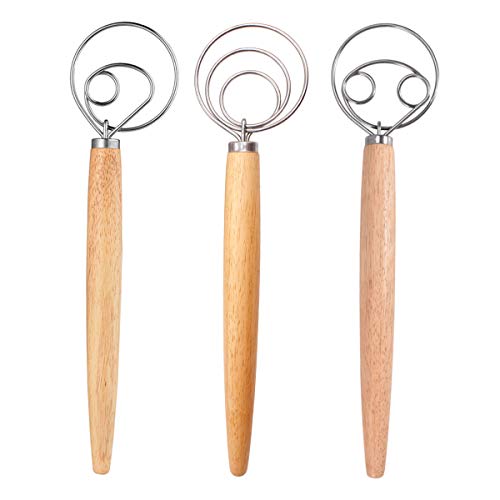 Danska degvispset, DBAILY 3 st äggvisp med trähandtag professionellt rostfritt stål dansk degvisp för kök bakning tårta efterrätt surdeg pizza