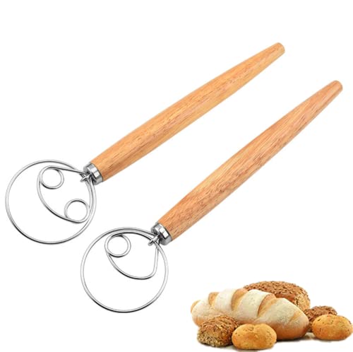 ORBLUE Dansk degvisp i rostfritt stål, handmixer för bakning av bröd, pizza, tårta, kakdeg, köks- och matblandare i trä och äggvisp för brödtillverkning, 2-pack, 34,3 cm