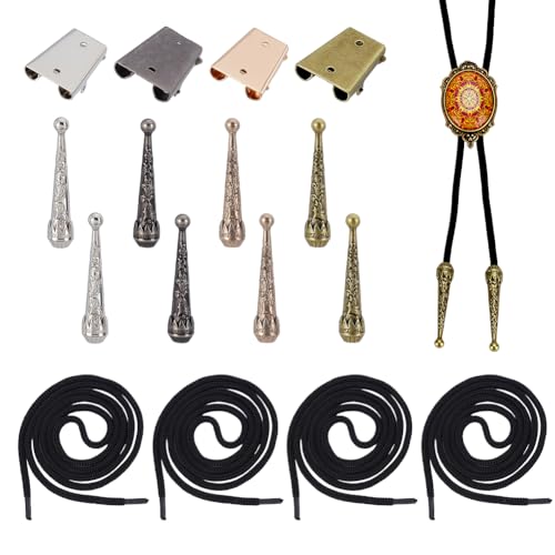 AHANDMAKER 4 uppsättningar bolo slipsset, 4 färger bolo slipsspetsar ersättnings ändlock kit, järn bolo lockspänne, bolo slipsspetsar för gör-det-själv hantverk fynd kläder dekor design halsband