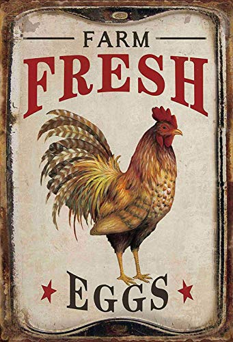 Schatzmix Nostalgie kyckling Farm Fresh Eggs metallskylt 20 x 30 cm dekor tin design plåtskylt, plåt, flerfärgad