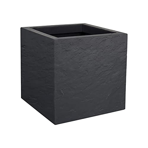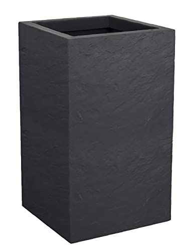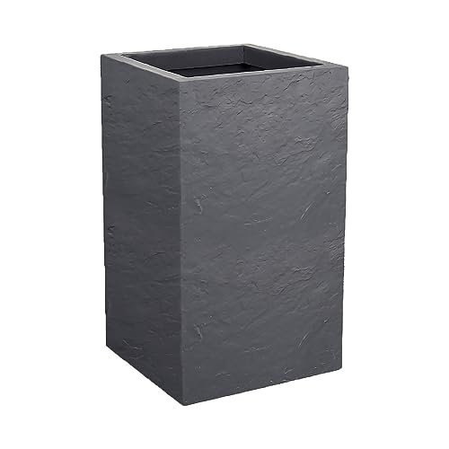 EDA - Fyrkantig kruka med hög vulcania'Up 36 L - stenimitation dekor - enkel vägg - vattenhållningszon, 29,5 x 29,5 x 49,5 cm, antracitgrå