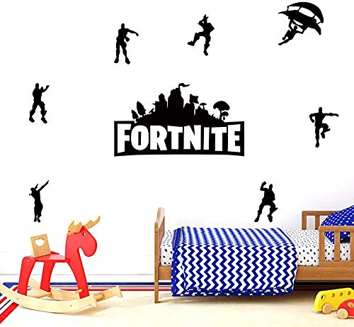 Fortnite väggdekaler barnkammare lekrum dekoration spel väggdekal för pojkar sovrum Fortnite rum dekor pojkar rum vägg vinyl dekal spel klistermärken (svart)