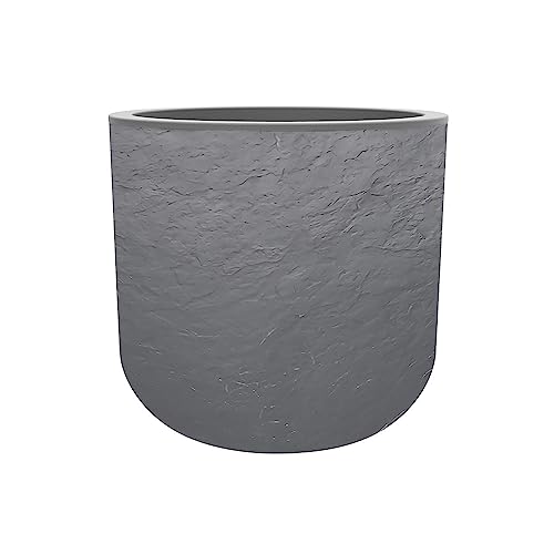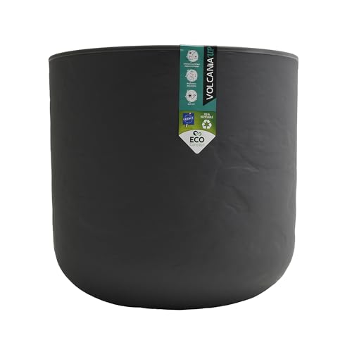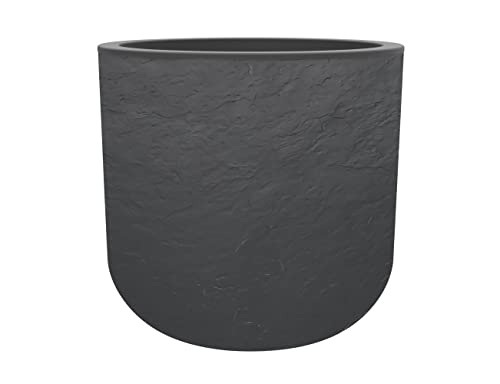 EDA Rund kruka 40 cm Volcania'Up 32,5 L - stenimitation dekor - enkel vägg - vattenhållningszon - Ø 38,5 x H 36,8 cm - antracitgrå