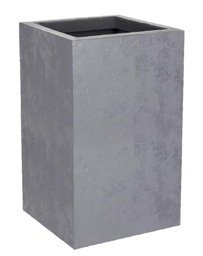 EDA Basalt'Up 36 L hög fyrkantig kruka - betongimitation dekor - enkel vägg - vattenhållningszon - 29,5 x 29,5 x H 49,5 cm - betonggrå