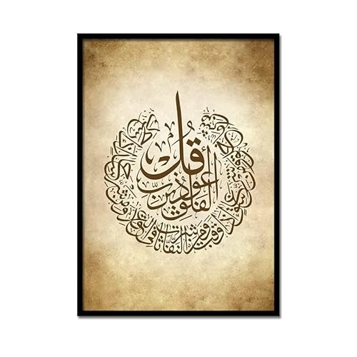 Handgjord av Stukk Al Ikhlas Ayat Alkursi Surah Falak rustik brun islamisk konst modern affisch dekor tryck vägg