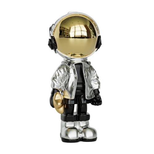 EZ4ENCE Liten statyett staty astronaut skulptur dekor, skulptur för heminredning, konst silver hylla dekoration, cool metallmask bordsdekor, miniprydnad