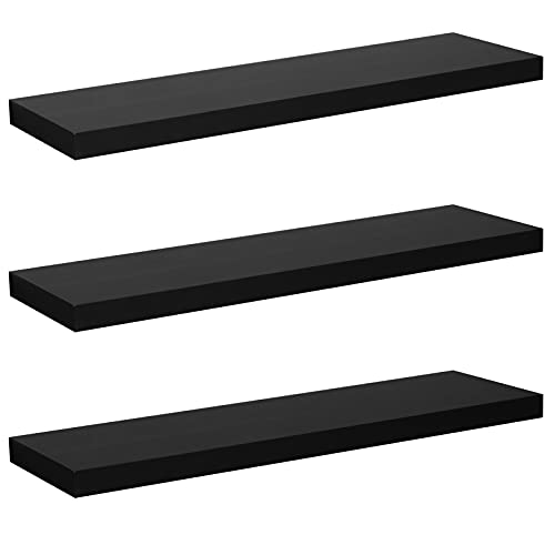 WOLTU Vägghylla, väggbräda, bokhylla, hyllor för dekoration, vägghyllor av MDF-trä, uppsättning av 3 hängande hylla, svart, RG9317sz-3