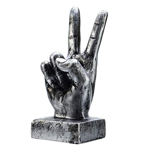 Trevligt köp handfinger gest skrivbord statyer fingrar skulptur kreativt hem vardagsrum skåp hylla dekoration (Victory gest i silver)