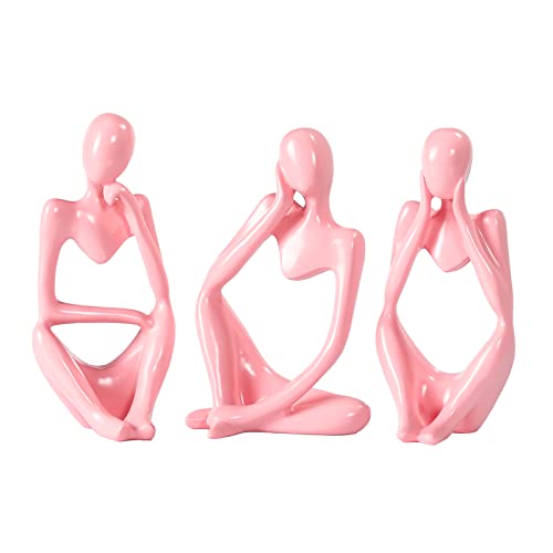BMLCGJ Tänkarstaty gulddekor abstrakt konstskulptur, gyllene harts samlarfigurer för hem vardagsrum kontor hylla dekoration, fantastiska presentidéer (rosa)
