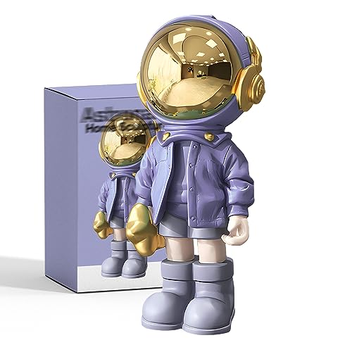 EZ4ENCE statyett staty astronaut skulptur rymdman dekor, skulptur för heminredning, konst lila hylla dekoration, cool metallmask bordsdekor, stor rymdfigur prydnad ge gåvor