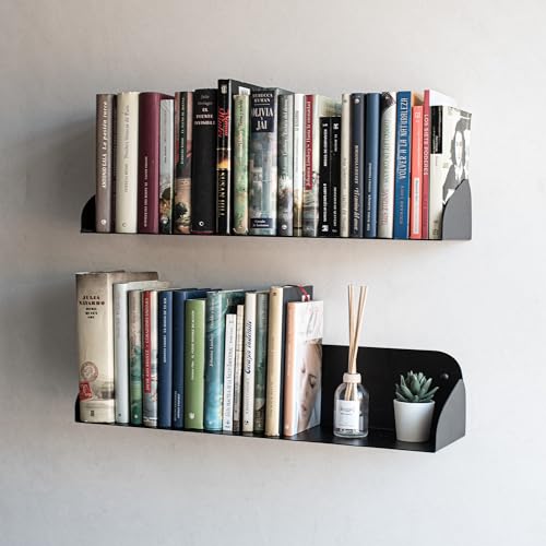 MILUKA Svart Vägg Hylla 60 cm | 2-Pack Industriell Bokhylla för Böcker och Dekoration | Metallkonstruktion för Hem och Arbete