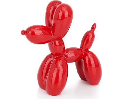 AMOIENSIS ballong hund skulptur, 10 cm, levande, mångsidig, liten dekoration för hylla, skrivbord, röd