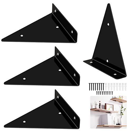 4 stycken flytande hyllhållare, osynliga triangelvägghyllhållare med skruvar, vägghylla i metall för hylla för dekoration vardagsrum, sovrum (130 × 140 )-svart