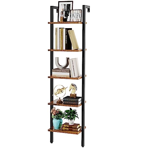 YMYNY Steghylla med 5 nivåer, bokhylla, gör-det-själv-stående hylla, trähylla, metallram, väggmontering, för böcker, dekoration, växter, för vardagsrum, kontor, balkong, Rustic Brown HBC015H