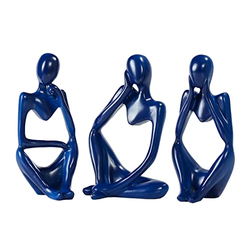 BMLCGJ Tänkarstaty gulddekor abstrakt konstskulptur, gyllene harts samlarfigurer för hem vardagsrum kontor hylla dekoration, fantastiska presentidéer (blå)