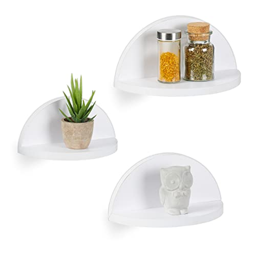 Relaxdays Vägghylla set, 3 olika storlekar, vägghylla för hall, kök och vardagsrum, svävande hylla dekoration, MDF, vit