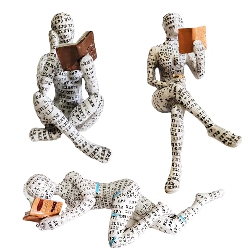 Yahu Lando 3 st läsande kvinnofigur, tänkarstaty, modern bokhylla dekor, estetisk skulptur, rumsdekor modern abstrakt dekoration på hylla bord skrivbord för vardagsrum kontor sovrum