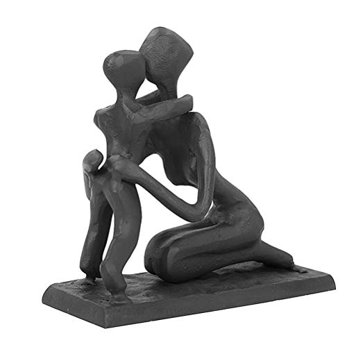 Aoneky Gjutjärn Par Staty - Par Kyssar Skulptur, Modern Abstrakt Stil, Dekoration för Hem Rum Bord Hylla, Gåva till Par Nygifta Bröllopsdag Årsdag Alla Hjärtans Dag Jul, Svart (Hoppa kram)