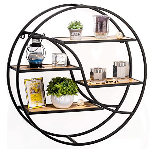 Relaxdays flytande hylla, svart, järn, 3 nivåer, modern dekoration, rund, vintage, D: 50 cm, svart och naturlig, 10028927