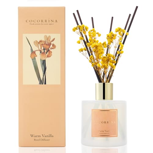 COCORRSTENNA Rumdoft Reed diffuser med 8 doftpinnar 200 ml – varm vanilj, naturlig, långvarig, hemdoft eterisk olja reed diffuser för badrum hylla dekoration