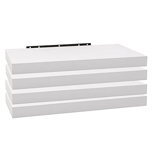 WOLTU 4 x vägghylla, väggbräda, bokhylla, hyllor för dekoration, vägghyllor av MDF-trä, set om 4 hängande hylla, vit, 60 x 23 x 3,8 cm, RG9319 ws-4