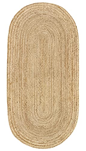 HAMID – Jute-matta, Alhambra oval naturlig färg, 100% handgjord jutefibermatta, för vardagsrum, sovrum, dekoration, (70 x 140 cm)