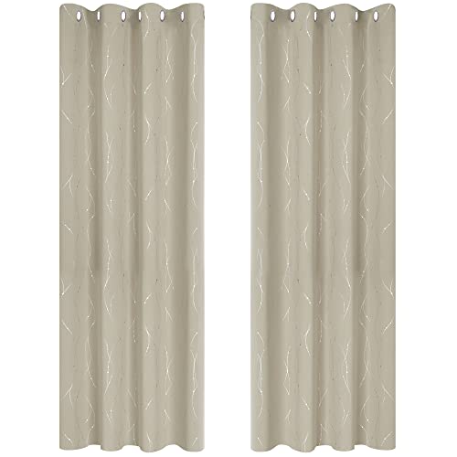 Deconovo Set med 2 öljetter mörkläggningsgardiner, stor bredd, isolerande, silver, termiskt mönster, anti-kyla, för sovrum, dekoration, 140 x 260 cm, mörkbeige