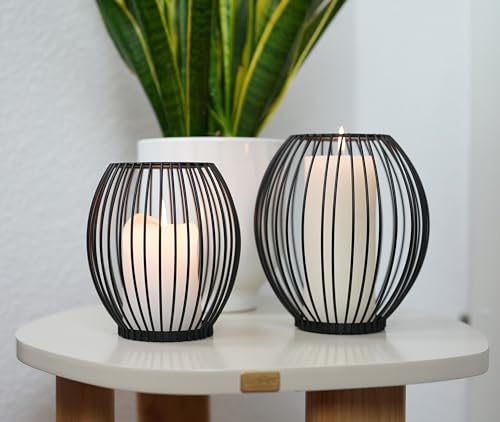 Relaxdays Ljusstake, 2 storlekar, tråddesign, metall, votiv- och blockljus, dekorativ ljushållare för hem, svart