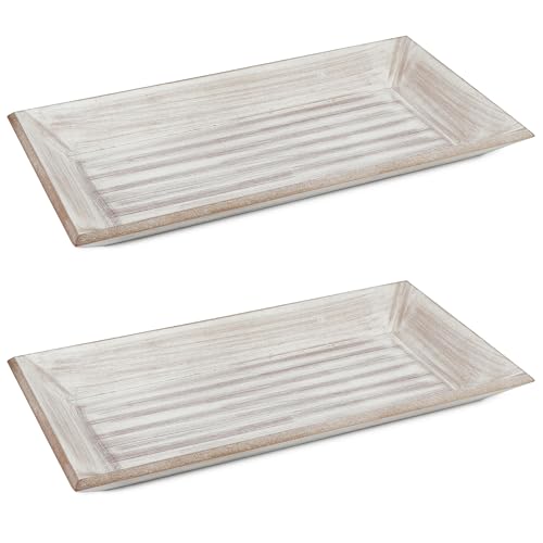 COM-FOUR® 2-delat träfatset - vintage träfat rektangulärt - serveringsfat med rustikt utseende - stor dekorativ skål - nyckelhållare - ljusstake (2 stycken - brun/vit)