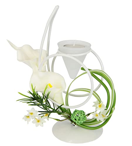 Värmeljushållare med glasinsats och värmeljusljus med blomma kalla, dekorativ kula, ljushållare, ljusstake, bordsdekoration, värmeljusglas, lykta, romantisk dekoration, objekt, bröllopsdekoration