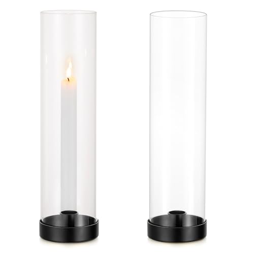 Sziqiqi Ljusstakar I Metall Svart 30cm - Orkanljusstake Dekorativ Ljusstake Med Avtagbart Glasljusstativ FöR Jul Halloween Bordsdekoration, 2st