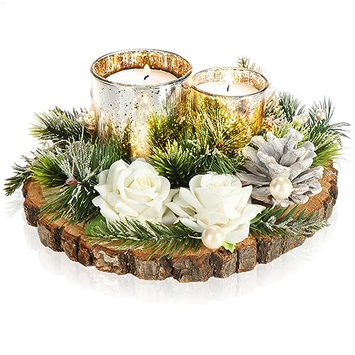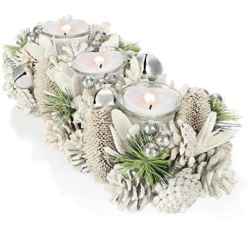 COM-FOUR® värmeljushållare - dekorativ ljusstake för jul och höst - ljusstake med naturmaterial - hantverk (Adventsarrangemang - 3 ljus)