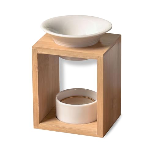 Burle Yona Parfym - Fondant brännare parfymvax - diffusor av eterisk olja och atmosfär doft - aromaterapi ljusstake i trä och dekorativ keramik - höjd: 12 cm - Zen'Arome