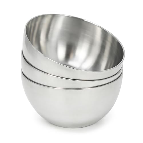 COM-FOUR® 3-delad skålset av rostfritt stål - salladsskål - chipsskål - mixerskål - serveringsskål - dekorativ skål (03 Stück - Ø 20cm)