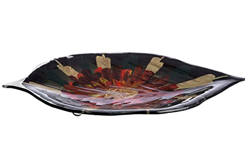 Glas konst skål dekorativ skål – dekoration vardagsrum bord – present till kvinnor födelsedag – handmålad färg: grön röd guld – bredd 56 cm