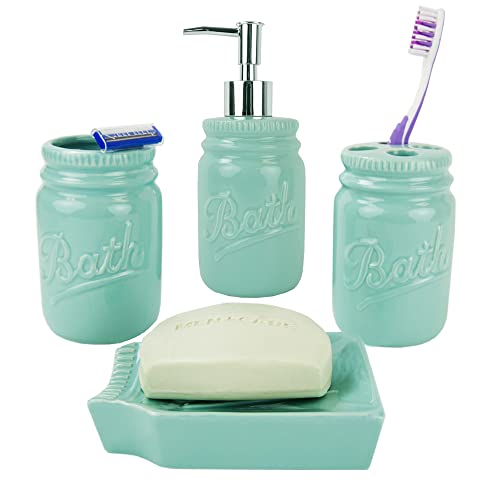 Home Basics vacker ros 4 st Dolomite Mason burk hållbar badtillbehör set-dekorativ lotion dispenser/skål/tumlare/tandborsthållare (mint) dekorationsidé