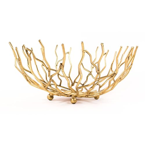 Puremagics handmålad guld dekorativ skål – 12 diameter, guld fruktskål, köksbord mittpunkt, heminredning.